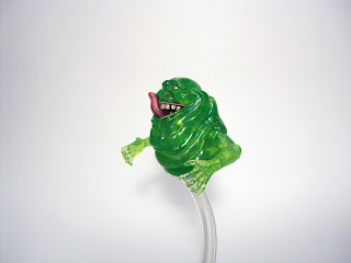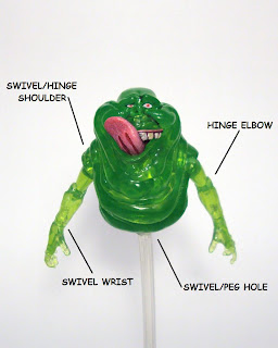 Peter comes packaged with a new Slimer figure and a stand for the green ghoul. Slimer is molded in transparent green and, as far as I can tell, his "body" is made of two parts that are glued together. Unlike the Slimer included with the SDCC Egon, this one has his tongue sticking out, licking his upper "lip", probably eyeing that food cart at the Hotel Sedgewick. The articulation on Slimer is pretty good, his arms can't go straight up because the hinges are obstructed by the fat layers molded over the shoulders, but the swivels rotate in a full circle. He can achieve a full 90 degree bend at the elbows and the swivels on his wrists go all the way around. Also, he can turn 360 on the stand as there is nothing to restrict that movement, although, you can always just turn the stand anyway.