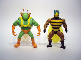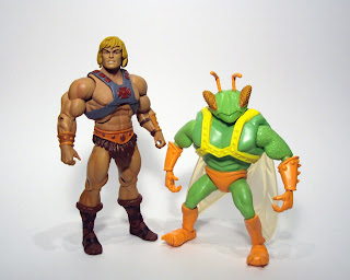 With all the various characters in the Toy Story world, Mattel has a unique challenge in recreating them in toy form as none of the characters are from the same toylines in the movie. Well, Ken and Barbie, obviously, but Buzz, Woody, Potato-head and the slinky dog are from different lines. That said, I find it pretty interesting that they added so many details to Twitch's sculpt, it's just too bad the paint and articulation are so limited, otherwise Twitch would be a really cool figure. I'll blame googum's "Bastards of the Universe" comic for enticing me into buying this guy along with my own comic-related ideas for him (hope to have that up soon). But at six bucks, I don't think he's all that bad and actually looks in scale with the vintage MotU line. He's actually a great figure to terrorize your dog or other small, domesticated animal with. Our Dachsund runs away in fear of the bright green bug man (especially when I chase her with him, while making buzzing sounds).