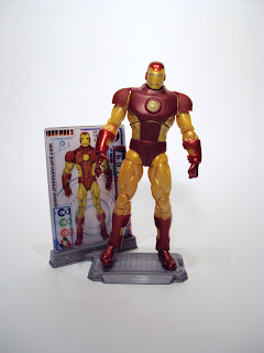 Like I mentioned before, I'm not a fan of 3.75", but that doesn't mean Hasbro's made it easy for me to pass on these figures. I liked a lot of the comic versions in the X-Men Origins: Wolverine line and then Marvel Universe hit with a lot of cool designs. Several times I had a stack of those in my cart, but forced myself to put them back and stick to collecting 6" figures. To my knowledge, this Iron Man armor was never produced at the 6" collector scale and so, I thought it would be nice to finally have a detailed interpretation of it in plastic. I've seen it in stores since the IM2 toys started flooding the market, but most of the samples I ran across had horrid paint issues. Finally, a couple of weeks ago, I was at my local Target store and found this one with passable paint. I immediately placed him in my cart along with the "Classic" armor featuring the horned faceplate, it was the only one on the pegs and since I missed out on him in the Marvel Legends line, I decided now would be a great time to grab him, too.