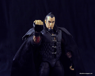I like to create my own little mythologies for figures, especially when they're figures I really enjoy. Here I have the Taker and his minions, The Road Warriors. If you don't know anything about the figures or pro-wrestling, you'd think they were from a fantasy or horror line, wouldn't you? You don't have to be a fan of pro-wrestling for this figure to appeal to you. It blurs the line between reality (as real as Pro-wrestling can be anyway) and fantasy. He has the Gothic/vampire look going which could blend in with so many different lines, he looks pretty boss next to MotUC, too.