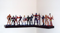 For several of these, it's their first time on display. I usually run out of space when I set up DCUC figures, so not everyone makes the cut. Left to right: Robot Man, Beast Boy, Negative Man, Metamorpho, Power Girl, John Stewart, Iron, Atom Smasher, Starfire, Animal Man, B'Wana Beast and Plastic Man.