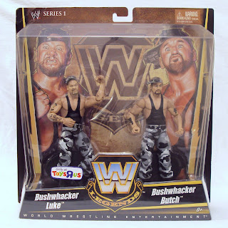 The Bushwhackers include the standard WWE display base and "Legends" name tags, just in case you forget who they are. The name tags are still flimsy cardboard which will crease easily if you do not handle them with care. It can be tricky placing them in the display stand's slot as it's slightly curved. If you bend it too much, then you'll have a nasty crease in the tag, making it look like sh!t on your shelf. I'd prefer a larger base with a sticker unique to each Superstar/Team as opposed to the separate cardboard name tag. That would eliminate the fear of ruining the tag.