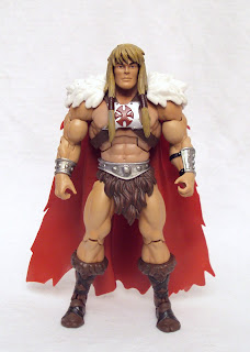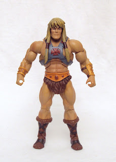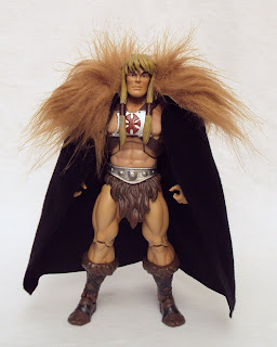 Here's another barbarian king to compare to. This is a WWE Elite Triple H borrowing the "Entrance Greats" Triple H attire (minus the knee pads) and featuring "Elite" Batista's boots, which I jazzed up a bit by painting the studs silver. I call him: Hun-Tur.