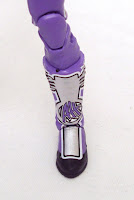 Hardy's tights are adorned with logos all around: the "key"-like designs on each thigh, the "pi" logos on his groin and buttocks and several details on his boots. Everything is printed beautifully and I'd like to make special mention of the painted leg pin holding the knee joint on the upper leg. It's been painted to match the logo on the thigh instead of just having it in a solid color (check out my review of the Road Warriors to see what I mean). The only area that was a bit weak on my figure was the logo over his groin. Some of the paint on the edge of the symbol was chipped out of the box. Other than that, it's nice.
