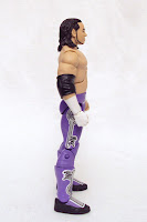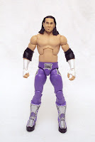 The figure receives the appropriate build for Matt Hardy, not overly toned, but not flabby either. In fact, I think the figure makes Matt look a little better. That's fine with me, it's a toy after all, and muscle tone should be a bit exxaggerated so it's just right for MH. The elbow pads are separate, removable pieces that fit over the arms. Matt also has the kick pad-style boots, but no knee pads are added.