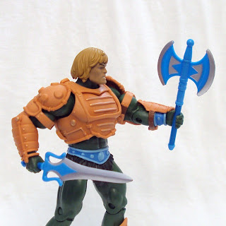 Articulation is standard for the line and everything works as it should. Obviously the armor hinders a lot of the movements, especially the chest armor. Maybe that's why Man-At-Arms only wears armor on one side of his body...