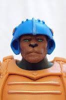 There are basically two types of chest plates in the set: Lieutenant and Private. The Private (Pvt.) comes in three stages of battle-damage: undamaged, one-strike, and, the near-fatal, two-strikes. If you have the previously released Battle Armor He-Man, then you're familiar with how these plates work. The chest armor opens up at the shoulders and sides, held together by tabs. Separating the armor allows you to push the plate out of the inside of the front armor piece. Then you just drop in the plate you want and lock it into place before replacing the chest armor.