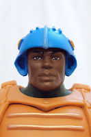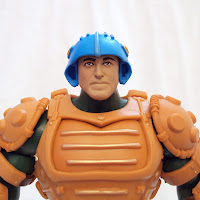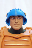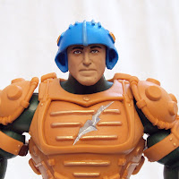 The other type of plate is the lieutenant (Lt.) rank and it is distinguished by an eagle emblem, which by the way is awesome. There's only one of these, so I guess being a Lt. makes you immune to battle damage. I gave Lt. Klamp the blue He-Man weapons from the Ultimate Battle Ground pack and I really like the way they stand-out from the orange armor the same way the helmet does. Plus, he's the Lt., shouldn't he have cooler weapons than the grunts?