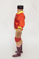 Volkoff includes his trademark russian winter hat, or ushanka, which is molded in black and features a tampographed red star and leaves on the front. His other accessory is the red "U.S.S.R." jacket he wore to the ring. It's made of a nylon or similar type material with the gold parts stitched on. The jacket opens on the front, just like a real jacket and closes with Velcro. I really dig the detail on the jacket and it looks great on display.