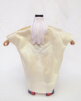 Iron Sheik once again features his keffiyeh and robe, the difference being the colors. This time around, the keffiyeh is molded in white with a black band painted around the top. His robe is made of a silky white cloth, still with a gold trim.