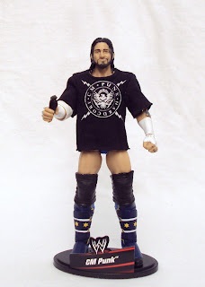Elite series 6 still features the WWE display bases and cardboard name tags. CM Punk's true accessories are his removable cloth t-shirt and hair clippers. The t-shirt features a "CM Punk: Hardcore" shield adorning the front. The overall fit of this shirt seems improved from his initial release, too.