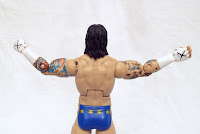 The sculpt on this figure is 100% identical to CM Punk's Elite series 1 release. The only difference regarding the sculpt is the addition of an elbow pad on his right arm to simulate the wrap Punk uses. I'm a little confused by Mattel's decision to add a pad instead of just painting the elbow white the way they paint the wrist tape on. I guess it gives you the option of displaying him with or without the pad since it is removable. Plus, you can admire all the sweet body art!