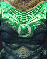 As you can see Fan's sporting a bell-shaped logo on his chest as opposed to the familiar lantern symbol. The logo is simply painted on instead of sculpted out like Movie Masters Hal Jordan and Tomar Re. While I'd prefer sculpted details, especially where the logo is concerned, it's to be expected given Mattel's track record with DCUC.