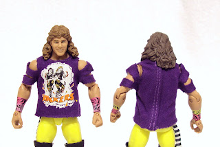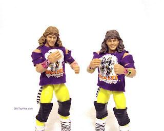 First up, the hair is big. Really big! You have to remember, these guys made their debut in the late '80s, when big hair was the thing. Even worse, the WWE has a record of being late to the party when it comes to trends and more importantly when it comes to abandoning a trend, so there you have it. I think Mattel went a bit overboard on Marty's hair, especially. The face sculpts are pretty great, effectively capturing the Rockers' happy-go-lucky smiles. Something a couple of other reviewers have pointed out is the cross-eyed look on Shawn Michaels. While he does have this defect now, it wasn't as obvious back in his Rockers days. You can't even make it out on his "Entrance Greats" figure which is based on his look only a few short years after he left the Rockers. That's more of a paint issue, bue considering they don't sculpt the eyes, I thought it was better to point out here.