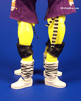 But all is not well in sculpt land because Mattel tried to pull a fast one on us. For some reason beyond my comprehension they used the standard, below-the-calf, laced boots on the Rockers, hence creating a need for those bulky, over-sized knee pads. I've looked through as much historical Rockers footage as I could and best as I can tell the Rockers used the taller, over-the-calf boots with smaller knee pads. The trick is that the knee pads lined up right above the boots and I guess that's why Mattel used the larger pads. But the error was their choice of boots, not knee pads.