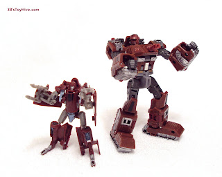 Articulation is very well done for PG and enough to make larger figures envious. He's definitely come a long way from his toy shelf debut in 1985 when he had barely any movement at all. Hasbro smartly incorporated ball joints that pull double duty for Powerglide in robot mode and during his transformation.