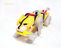 Convertying YL into his leg mode is an unnecessarily frustrating endeavor, at least with my figure, because moving one limb triggers the spring-loaded, "auto-transforming" feature and limbs that were already tucked away pop back out. The same goes with it's head. Unlike the Red Lion, Yellow only has one button to activate the feature and that's why manipulating one pair of legs affects the other pair. The weak locking mechanism raises concerns about how effective it will be when all the lions are combined.