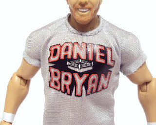 The "Daniel Bryan" t-shirt accessory included with the TRU figure is the best accessory they could have given him. I remember when he debuted it on WWE TV, I was immediately a fan of it. It relays a simplicity perfect for the character at the time: nothing but a wrestling ring and his name printed in big bold lettering. The shirt is made of a nice shiny material, but works the same as the other cloth t-shirts we've seen in the line. A simple, thin strip of velcro keeps it closed on the back. The printing on the shirt is crisp and translated well from the screen.