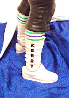 Like I stated above we've pretty much already seen Kerry's figure before and it suffers from the same odd head sculpt as the TT figure did. To deliver this figure Mattel only had to remold the crotch piece and boots in white plastic, then add white, blue and green paint for the wrist tape and striped socks. His boots also feature "KERRY" printed vertically down the side of each boot in black paint.