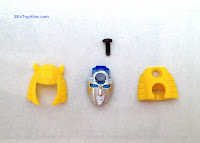 The head is held together by a screw, so removing it allows you to easily break the head down into it's three parts. This helps when repainting the "helmet" portions without having to worry about messing up the face. When reassembled the head snaps on to the existing neck peg without a problem.