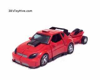 Although I didn't like the paint scheme on the Universe Cliff, I liked the idea of he and Bumblebee having different decos. Since my "classics" Bee is also the RTS version, I wanted a contrast between his racing stripes and a more solid red version of 'jumper. I decided to use black paint for some of the sculpted out details on the little sports coupe and also paint his hood scoop and spoiler in black. I think it gives him a bit of that custom street racing vibe without going overboard. I also used grey paint on his grills.