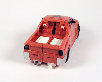 First up, Swerve's alt-mode is identical to Kup's non-descript pickup mode. He's mostly red, but has a somewhat obnoxiously glossy black hood. Why did they paint his hood black? It could be an homage to his "G1" toy, which featured a black hood scoop, but that's kind of reaching. Beats me why they did it, but it does give him that carbon-fiber, illegal street racing look. I just wish it wasn't so glossy.