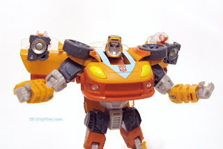Wheelie ended up with an orange color palette, giving him a very distinct look from the other Autobots. The Generations figure delivers the same, off-beat coloring. He's mostly molded in the necessary colors, with very minimal paint apps, which seems to be the standard for action figures nowadays.