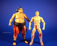 Look at him next to the very average-sized Daniel Bryan. Yokozuna looks like he could eat him! That's exactly what you want out of a Yoko action figure.
