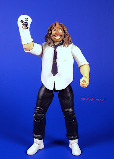 Mattel went with arguably the most popular version of Mankind as he appeared near the end of his in-ring career in the WWE. He's in his mock-Corporate look with the untucked shirt and loose tie, but now sporting sweatpants instead of the tights the original Mankind costume featured. I'm fine with the choice, but I would have accepted a version based on his infamous 1998 King of the Ring appearance where he and the Undertaker (but mostly Mankind) delivered what is probably the most memorable "Hell in a Cell" match ever. On a side note, I think it's about time Mattel released that version of the Undertaker, too.