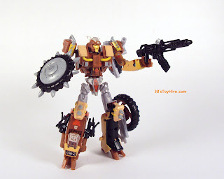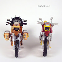 Once all the pieces are in place you end up with a very aggressive looking dirt-bike quite worthy of being a Junkion alt-mode. And the best part is having those pieces on the motorcycle mode doesn't hinder the ability to have another Junkion figure ride on it!