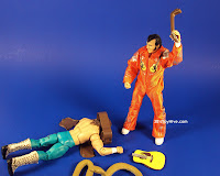 Once Honky is out of his jumpsuit he's made up of reused parts. His upper & lower torsos are the same used on Nikolai Volkoff & Demolition. His legs and knee-high boots have also been used throughout the Legends line. Most impressive is the headsculpt. Everthing from Honky's slick pompadour to his crazy sideburns to his cocky smirk are all present on the figure and painted very well.