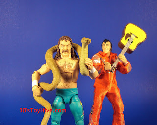 Nevermind the fact he is "The Greatest Intercontinental Champions of All Time", his gimmick was fantastic! Like a lot of those larger than life personas during the Golden Era of WWE, he translated well into action figure form and made him a popular with kids. At long last Mattel has tackled the Elvis-inspired blue suede Superstar (although not in "Legends" packaging) via the current "Flashback" pipeline running through the Elite series since wave 12.